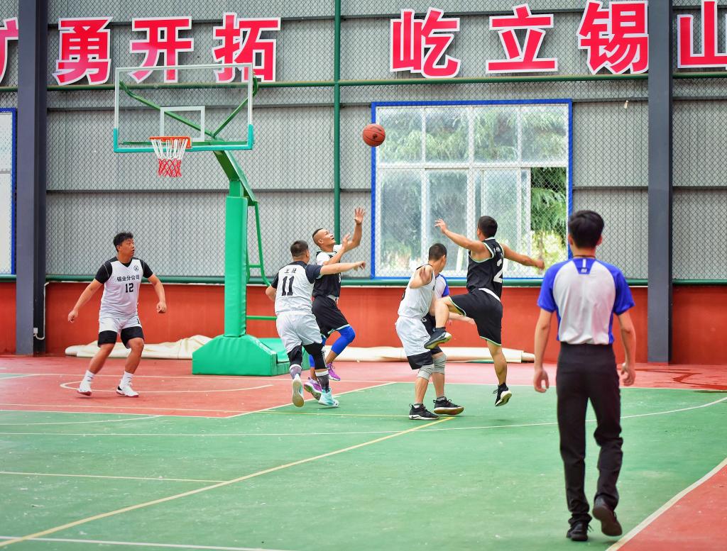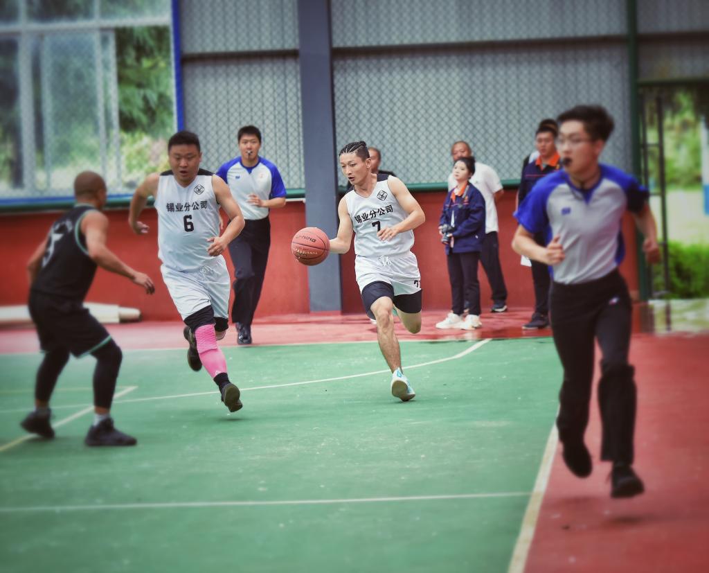 隨著一聲哨響,錫業(yè)分公司對陣卡房分公司的揭幕賽正式打響。兩隊隊員迅速投入比賽,熟練的運球、華麗的轉(zhuǎn)身、精準(zhǔn)的傳球、精彩的投籃和完美的配合,使比賽場面異常激烈,各位隊員都全力以赴、嚴(yán)防死守、步步為營、越戰(zhàn)越勇,展現(xiàn)出了極佳的心理素質(zhì)。場下觀眾為喜愛的球隊吶喊助威,每一次突破、每一個進(jìn)球都贏得了場下觀眾的陣陣喝彩。