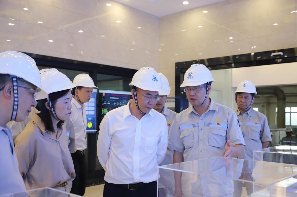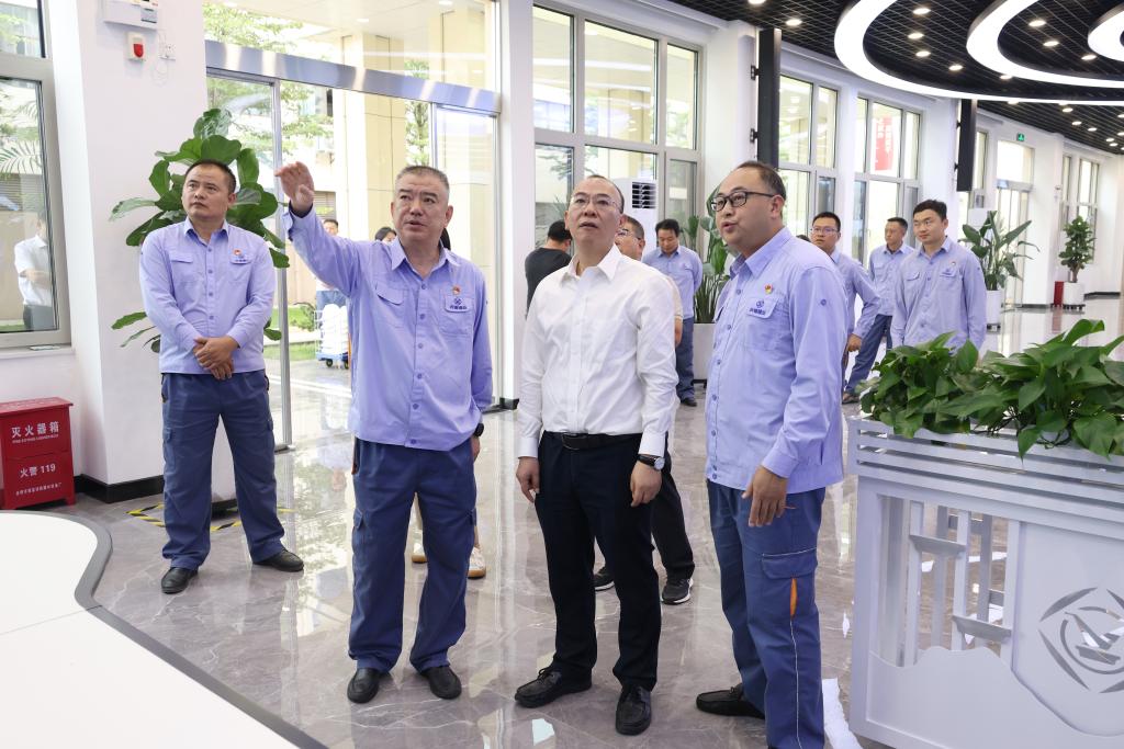 在銅業分公司,孫勇深入熔煉車間雙圓盤澆鑄、電解車間槽面生產現場,實地了解陽極板生產工藝,現場查看電解槽智能巡檢系統、自動剝片機組、5G智能倉儲系統,了解陰極銅、金、銀、鈀、硫酸鎳等產品銷售情況,并詢問原料采購、銅加工費、硫酸定價方式等相關情況。