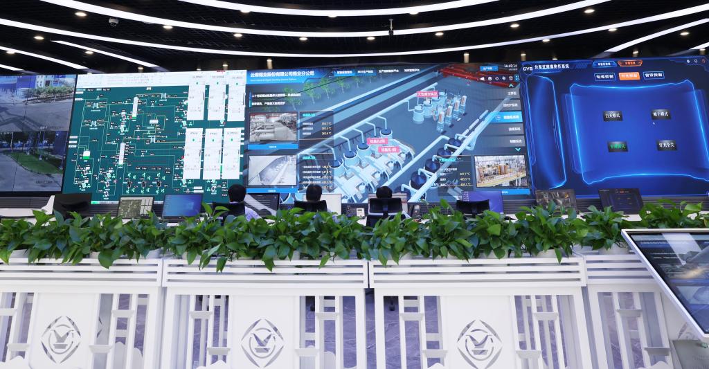 工廠車間里,中控顯示屏上,生產數(shù)據(jù)實時傳送,設備運轉立體呈現(xiàn),整個工藝流程各種性能參數(shù)盡收眼底,操控信息一目了然。