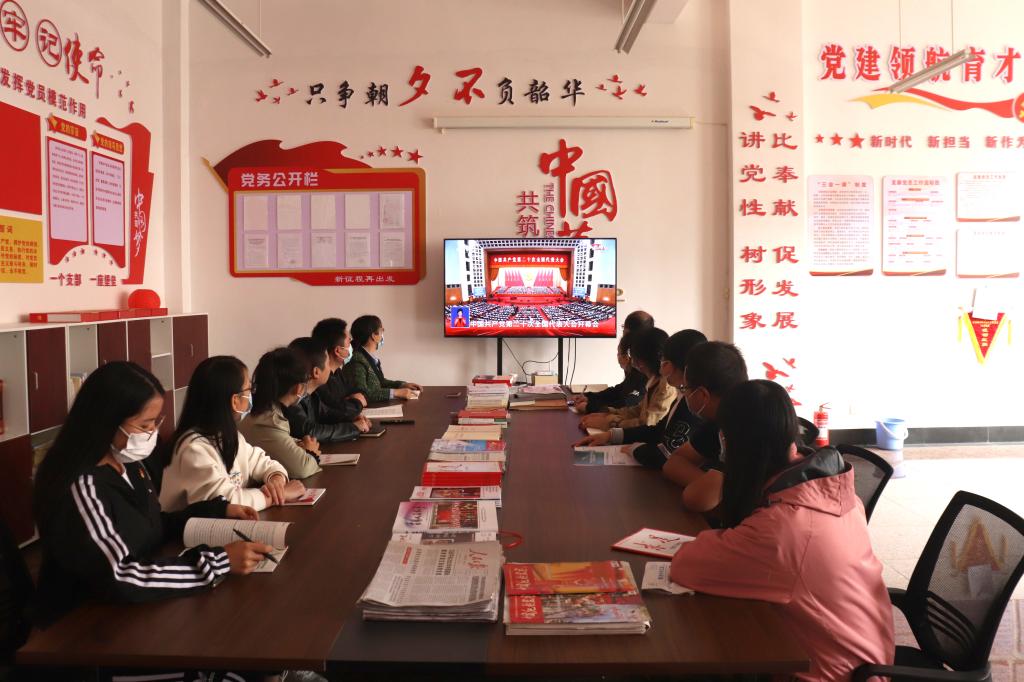 教學服務黨支部黨員在2021年云南省職業院校教學能力大賽中獲一等獎,2022年礦物加工技術專業教學團隊入選省級教師教學創新團隊。黨員同志們認真聆聽了黨的二十大報告并紛紛表示:要牢記習近平總書記的殷切囑托,切實用黨的科學理論武裝青年,用黨的初心使命感召青年,做青年朋友的知心人、青年工作的熱心人、青年群眾的引路人,以實際行動深學細悟、貫徹落實黨的二十大精神。