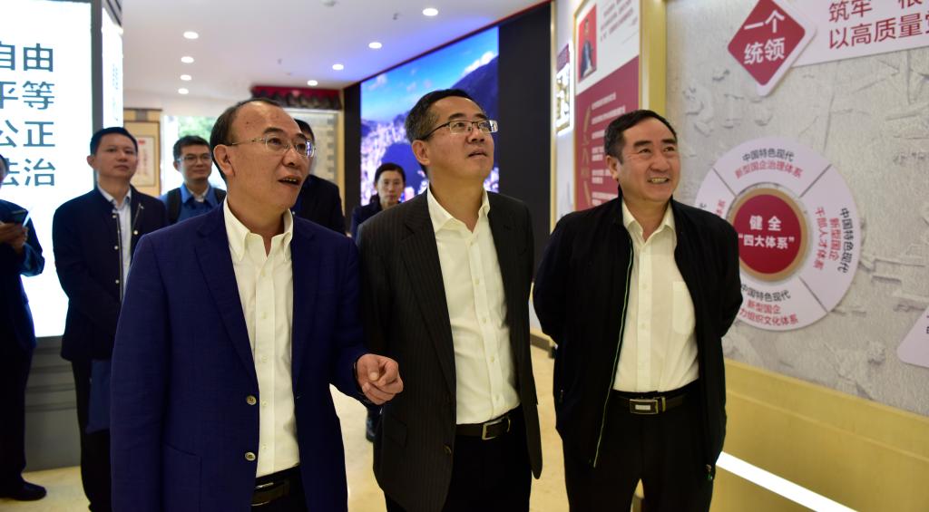 會前,梁強一行觀看了云錫宣傳片,參觀了昆明總部一樓展廳。