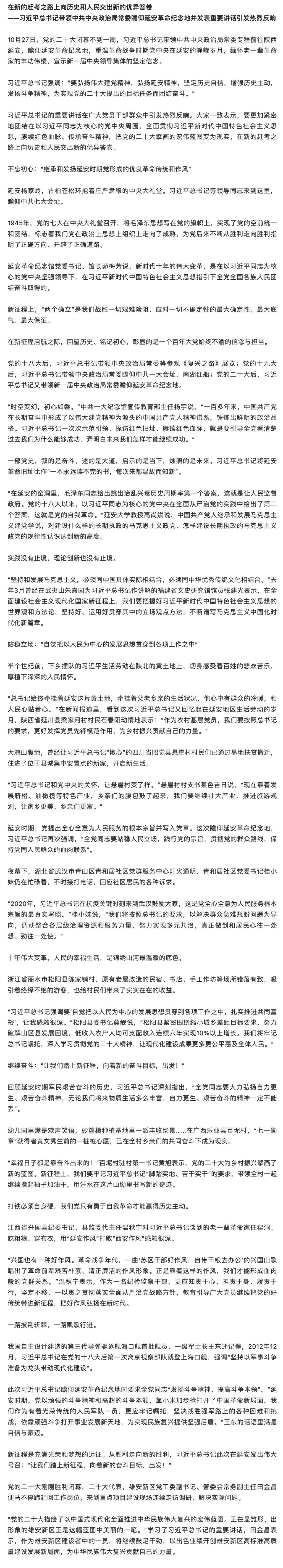 【學習二十大】在新的趕考之路上向歷史和人民交出新的優異答卷