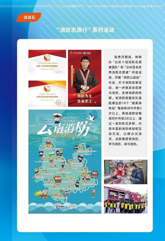 宣傳月期間,將舉辦“云嶺十佳消防志愿者團隊”和“云嶺百名優(yōu)秀消防志愿者”評選活動,開展“消防公益說”代言、打卡消防站等活動,進一步激發(fā)全民參與消防、支持消防的熱情。總隊首批推出的18個“最美消防站”每周將對外開放3次以上,其他消防站每周對外開放2次以上,通過一系列形式多樣、內(nèi)容豐富的消防體驗和互動交流,讓群眾沉浸式學習消防知識,近距離感受消防、學習消防、參與消防。