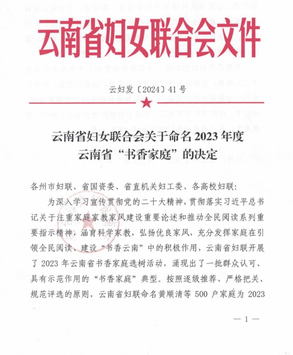 近日,由省婦聯組織開展的2023年云南省書香家庭選樹活動結果揭曉,云錫推薦申報的大屯錫礦李英和華聯鋅銦公司余婭榮兩戶家庭均獲此榮譽。