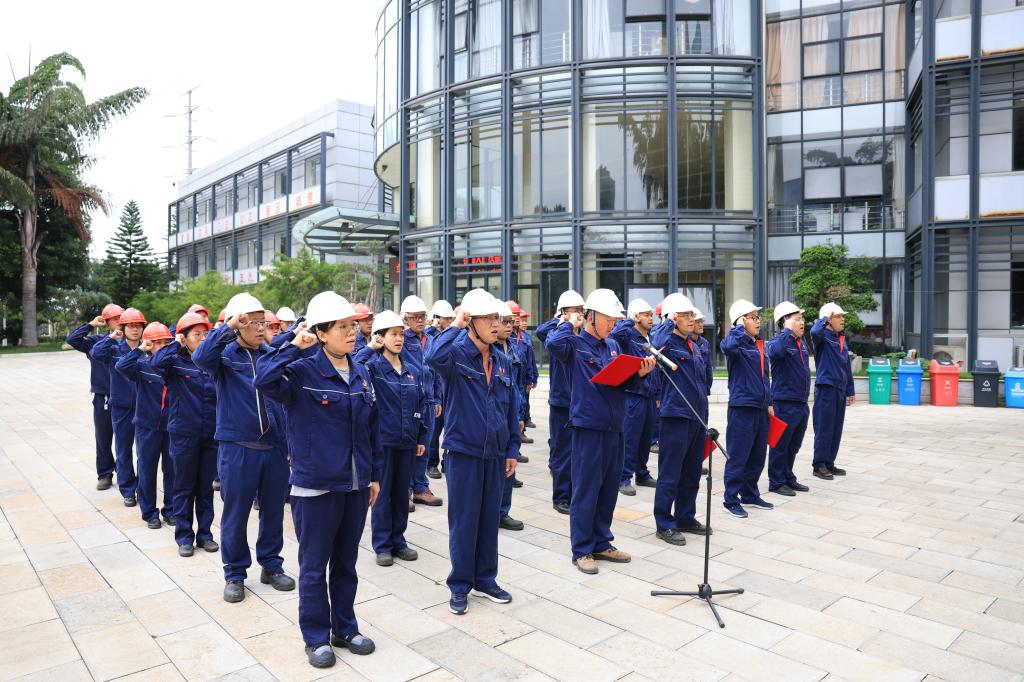 物流公司、錫都實(shí)業(yè)公司在云錫個(gè)舊辦公樓聯(lián)合舉行安全月活動(dòng)升旗儀式,唱安全歌、升安全旗,宣讀《安全環(huán)保倡議書(shū)》,進(jìn)行安全宣誓,并在主題橫幅上鄭重簽名承諾。(肖涵月)