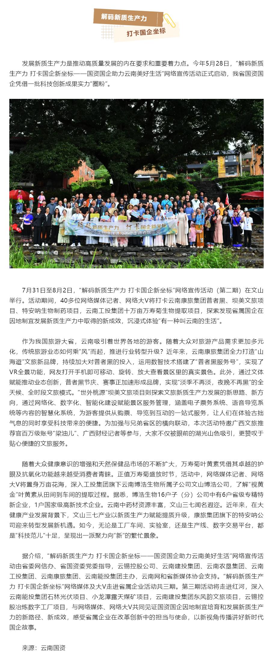 “解碼新質(zhì)生產(chǎn)力 打卡國(guó)企新坐標(biāo)”網(wǎng)絡(luò)宣傳活動(dòng)(第二期)在文山舉行