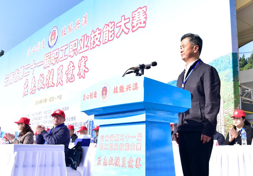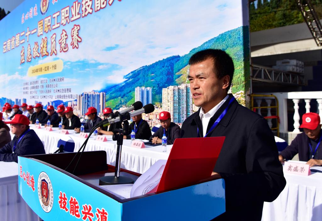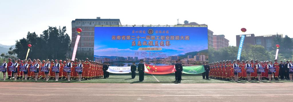 10月24日上午,伴隨著雄壯的國歌聲,云南省第二十一屆職工職業(yè)技能大賽應(yīng)急救援員競賽在云錫職業(yè)技術(shù)學(xué)院舉行。