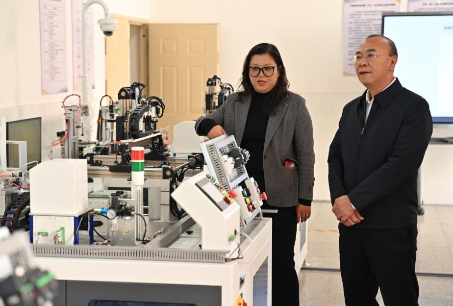 在職業學院,孫勇查看冶金虛擬仿真、京東物流、磁電選礦等實訓室,聽取辦學運營及改革發展情況匯報。