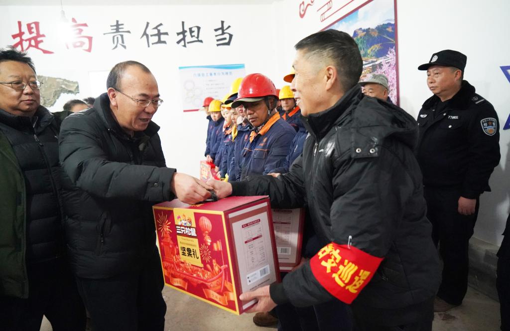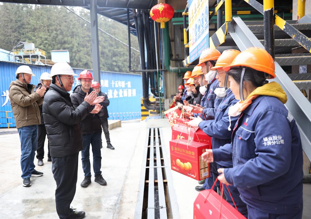在老廠分公司背陰山沖尾礦庫回采再選工業實驗基地,孫勇看望慰問值班值守人員,向大家的堅守和付出表示感謝,叮囑大家站好崗、履好責,祝福大家新春快樂。(李華為)