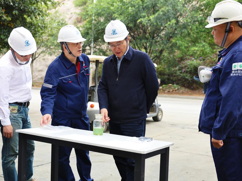 在銅業分公司制酸車間白煙塵工序,韓守禮查看生產工藝流程和硫酸鋅、鉛鉍渣等產品。強調要堅持冶煉多金屬協同回收發展思路,圍繞“以廢治廢、循環利用”研究方向,整合科技資源,強化技術研發布局和儲備,推動成果轉化,加速產業轉型升級。(朱晗)
