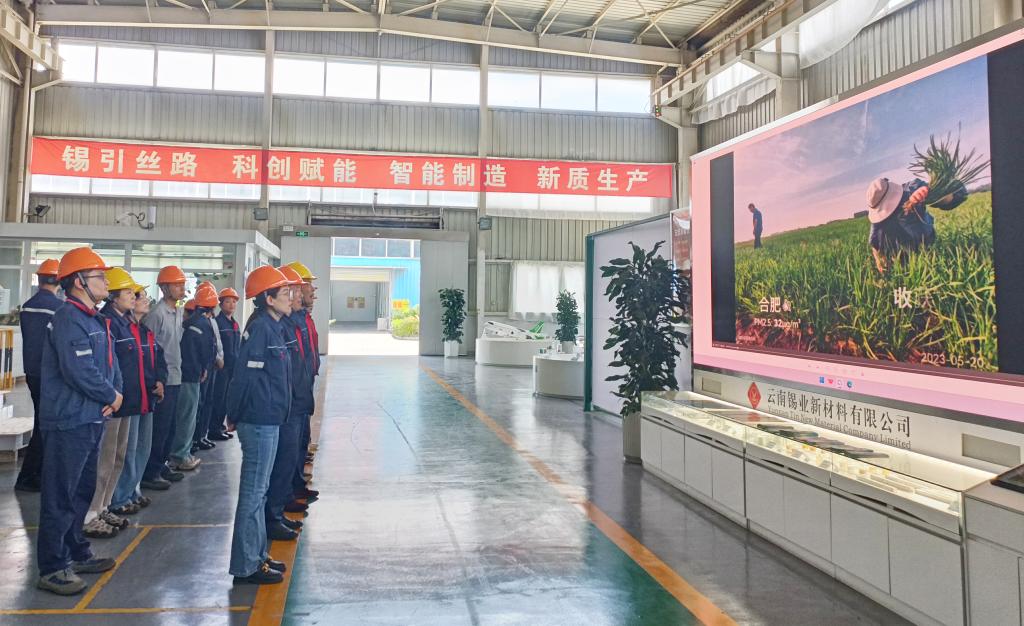 錫業分公司設立宣傳展臺,發放低碳生活、固廢防治手冊,引導干部職工踐行錫冶煉綠色轉型理念。(楊鑫媛)