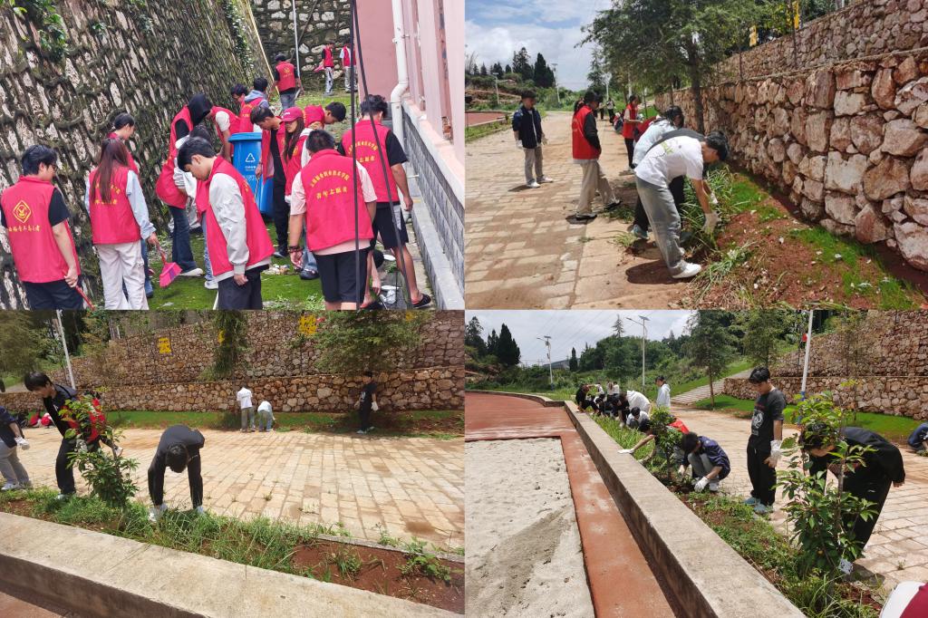 職業學院開展“我是樹苗守護者”、校園衛生死角清潔活動,有效增強青年學子環保意識,助力綠美校園建設。(夏丹)