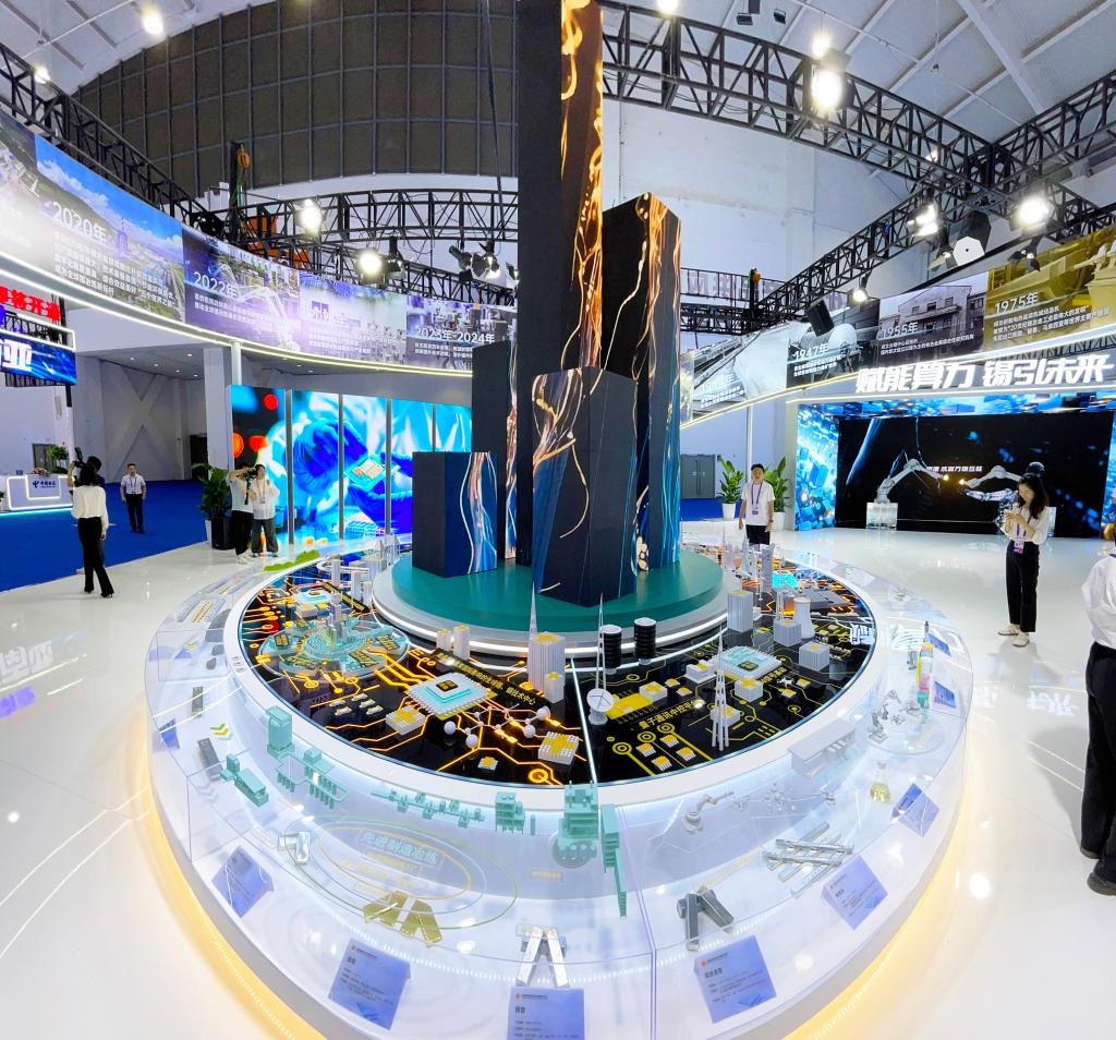 前沿科技應(yīng)用——勾勒錫銦創(chuàng)新生態(tài)。在云錫展臺(tái)核心區(qū)域,“芯聯(lián)萬物”創(chuàng)新沙盤格外引人注目。沙盤以云南錫銦實(shí)驗(yàn)室為中軸,通過芯片互聯(lián)電子通訊、智能制造、智慧生活、航天航空、智聯(lián)運(yùn)輸5大應(yīng)用板塊,并貫穿綠色智慧礦山、先進(jìn)制造冶煉、專精特新深加工全產(chǎn)業(yè)鏈,全面呈現(xiàn)錫和銦作為算力金屬的顯著特征,更充分展示云錫錫銦推動(dòng)創(chuàng)新鏈與產(chǎn)業(yè)鏈深度融合,圍繞打造國家錫銦產(chǎn)業(yè)技術(shù)創(chuàng)新高地及原創(chuàng)技術(shù)策源地、建設(shè)具有重要國際影響的全球錫銦技術(shù)中心的創(chuàng)新生態(tài)。
