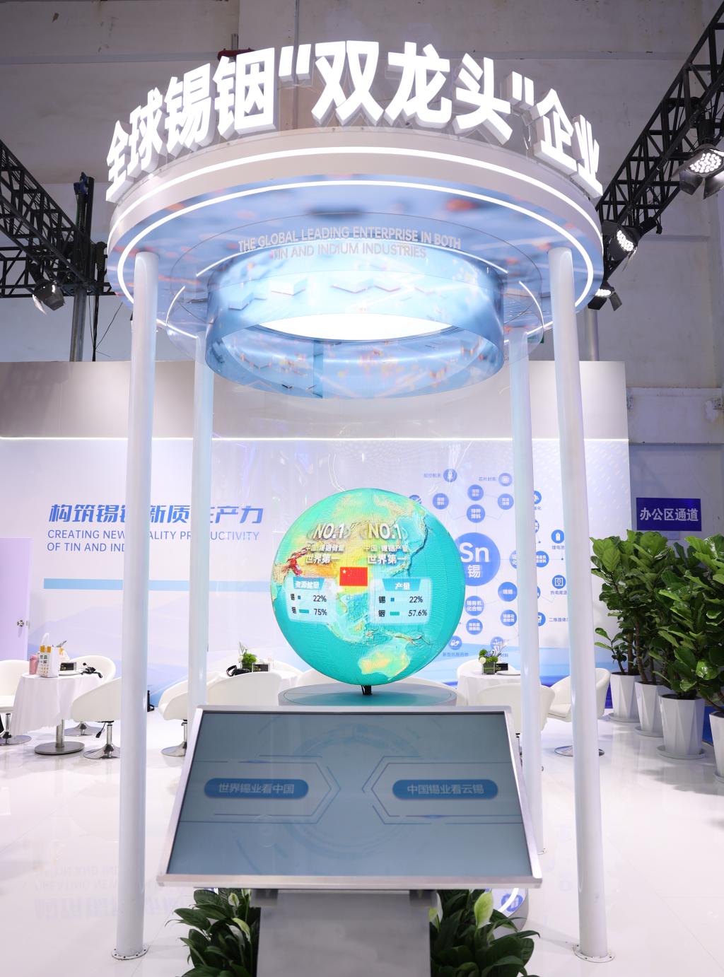 地球智能互動(dòng)——探知錫銦世界之源。地球儀智能互動(dòng)裝置是云錫展臺(tái)的另一人氣打卡點(diǎn)。輕觸屏幕,地球儀同步轉(zhuǎn)動(dòng),全球錫銦資源分布實(shí)時(shí)呈現(xiàn),云錫產(chǎn)業(yè)布局和銷售網(wǎng)絡(luò)清晰呈現(xiàn),喻寓著百年云錫以開放之姿擁抱世界,攜手全球伙伴開拓更大可持續(xù)發(fā)展空間。