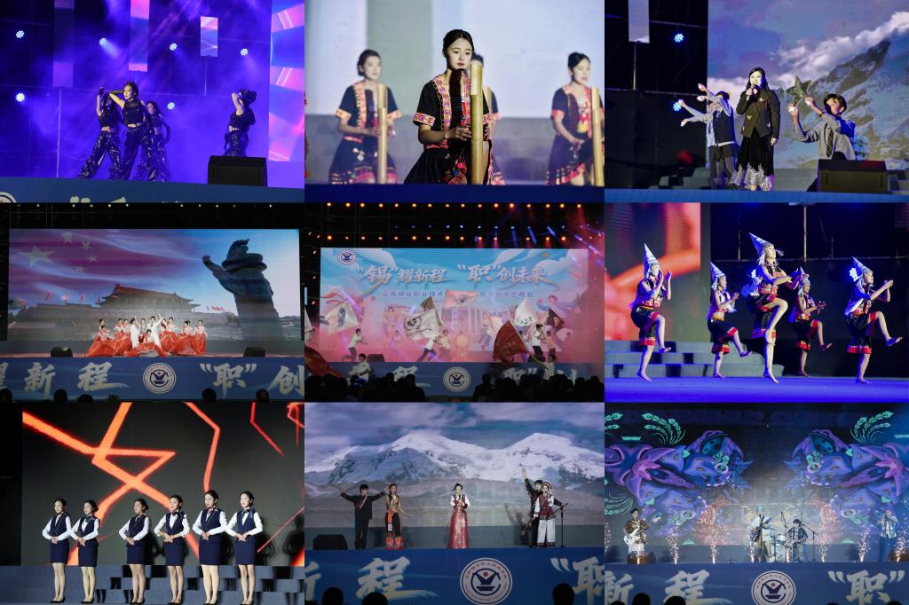 現代舞《燃》通過動感的肢體語言和炫酷的電音背景,讓青春魅力拉滿,詮釋了學子懷揣夢想、向陽生長的熾熱激情;民族歌曲串燒《同心歌未央》唱響個舊各民族同胞同心同德、守望相助的動人樂章,彰顯學院深化民族團結教育,努力培育懂團結、愛家鄉、有擔當的時代新人;朗誦《青春筑夢錫職·啟航未來征程》深情回顧學院72載根植有色、校企一體、培育工匠的辦學歷程,抒發了學子與祖國共命運、與學校同成長的堅定信念……學院青年學子以舞蹈、歌聲、深情朗誦等形式詮釋“請黨放心,強國有我”的青春誓言。