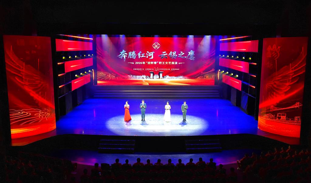 奔騰紅河潮涌不息,云錫之鷹志存高遠(yuǎn)。2月8日晚,由云錫控股公司工會(huì)和紅河州總工會(huì)聯(lián)合州文聯(lián)、州歌舞團(tuán)共同舉辦的“奔騰紅河·云錫之鷹”2026年云錫“迎新春”職工文藝展演在蒙自市紅河大劇院隆重舉行,以文藝為橋、以團(tuán)結(jié)為翼,彰顯政企共興、民族團(tuán)結(jié)、產(chǎn)業(yè)繁榮的時(shí)代氣象。