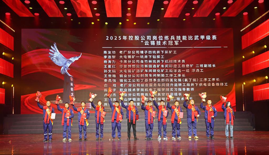 2025年控股公司崗位練兵技能比武甲級(jí)賽“云錫技術(shù)冠軍”合影。