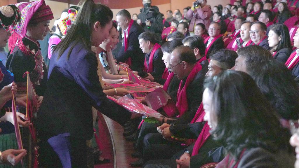 在迎春送福互動(dòng)環(huán)節(jié),現(xiàn)場(chǎng)演職人員為現(xiàn)場(chǎng)觀眾獻(xiàn)上由州文聯(lián)書(shū)法家創(chuàng)作的一張張“福”字,祝福大家福氣滿滿當(dāng)當(dāng)、幸福久久長(zhǎng)長(zhǎng),祝福云錫躍馬揚(yáng)鞭、事業(yè)長(zhǎng)虹。
