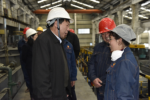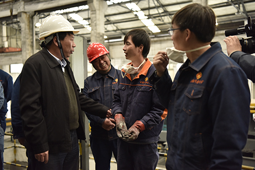車間聲音大,張濤湊近當班職工親切慰問
