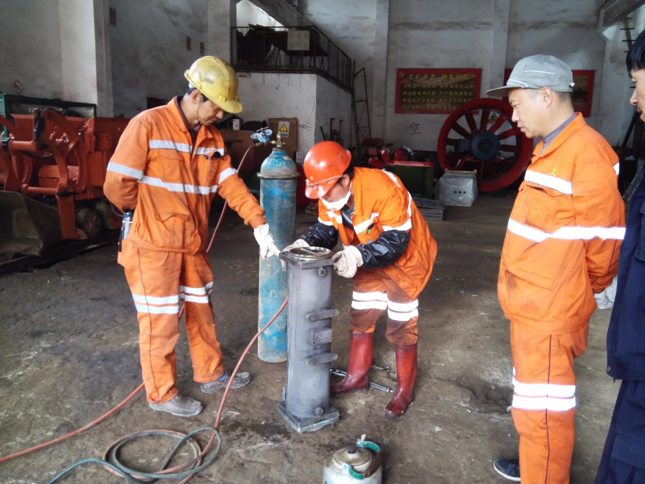 近日,老廠分礦竹葉山坑設(shè)能股自制油管通漏測試工具,檢測清洗后的空壓機殼管式油冷器是否通漏,確保了空壓機的正常運行。