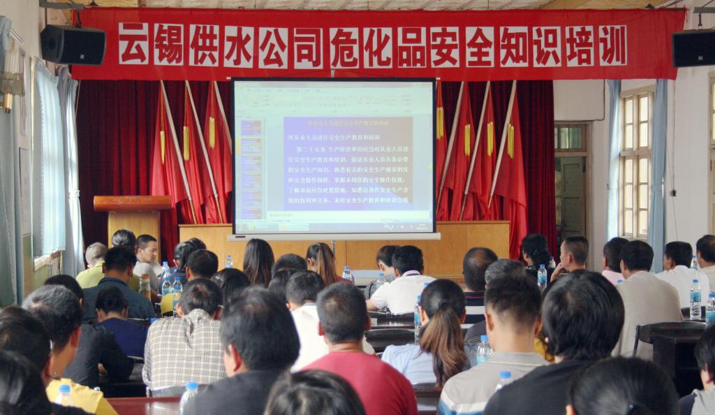 此次培訓就危化品的化學特性、危險性與識別,危化品在裝卸搬運過程中的注意事項和防范、應急方法及措施,危化品的使用和存放方法等進行了專題講解。培訓還分析了當前供水公司使用危化品的安全形勢,講解了三氯甲烷、硫酸、丙酮、甲苯、高錳酸鉀、亞氯酸鈉、氯氣、乙炔、汽油、柴油、變壓器油等一些常用化學品的危險性及發生事故時的應急措施。通過培訓,進一步強化了供水公司安全生產管理人員和操作人員的安全意識,熟知了危險化學品安全管理的基礎知識,確保安全生產形勢持續穩定。