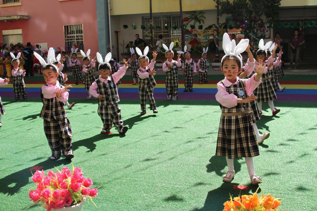 活動現場熱鬧非凡,小朋友們身著漂亮的盛裝,與老師、家長一起歡聚一堂。各組小朋友們表演的《向著目標奔跑》、《古典千金》、《環保時裝秀》、《西班牙斗牛舞》、《快樂的節日》、《感謝春天》等節目精彩紛呈。表演時,孩子們勁頭十足、動作整齊,紅紅的臉蛋流露出可愛、燦爛的微笑,讓陪同的家長們感到無比幸福和喜悅。活動在親子游戲、故事比賽頒獎中圓滿結束。