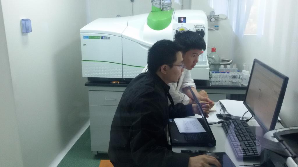此臺分析設備為2014年公司零固設備投資項目,因其價格昂貴、精密度、靈敏度高,安裝環境要求較高等,中心于2013年11月赴全國各地多個實驗室進行了適用性調研。選型過程中,中心與廠家簽訂了詳細的技術協議。第一階段的安裝調試工作已于2014年12月16日完成,廠家工程師同時對中心科研技術人員進行了相關知識的培訓。兩次驗收過程中,中心多名技術人員全程陪同,詳細了解了儀器構造、軟件功能、日常維護等,現階段基本掌握了常規樣品的測試。