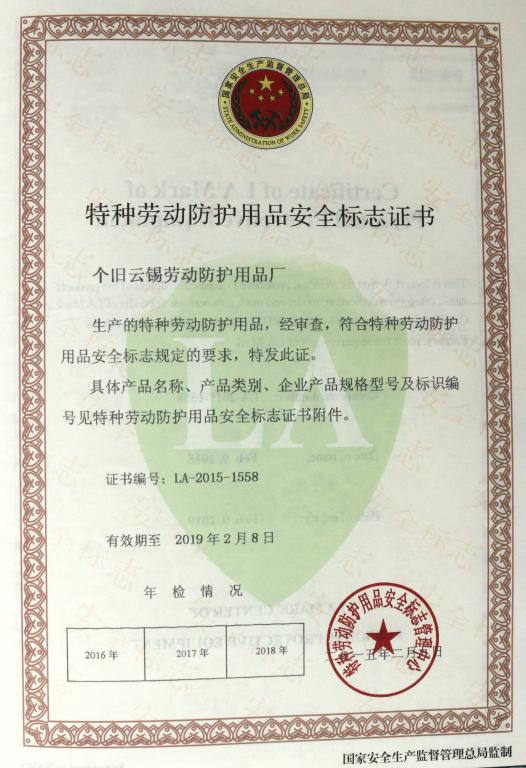 近期,云錫勞動(dòng)防護(hù)用品廠取得國家《特種勞動(dòng)防護(hù)用品安全標(biāo)志證書》,成為云南省特種勞動(dòng)防護(hù)用品生產(chǎn)企業(yè)中屈指可數(shù)的獲證企業(yè)。