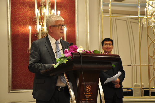 簽字儀式上,國際錫協總裁戴維?畢夏普、云錫控股公司董事長張濤分別致辭。
