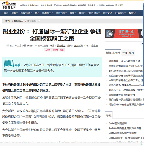 2月23日至24日,錫業股份在個舊召開第二屆職工代表大會第一次會議暨工會第二次會員代表大會。