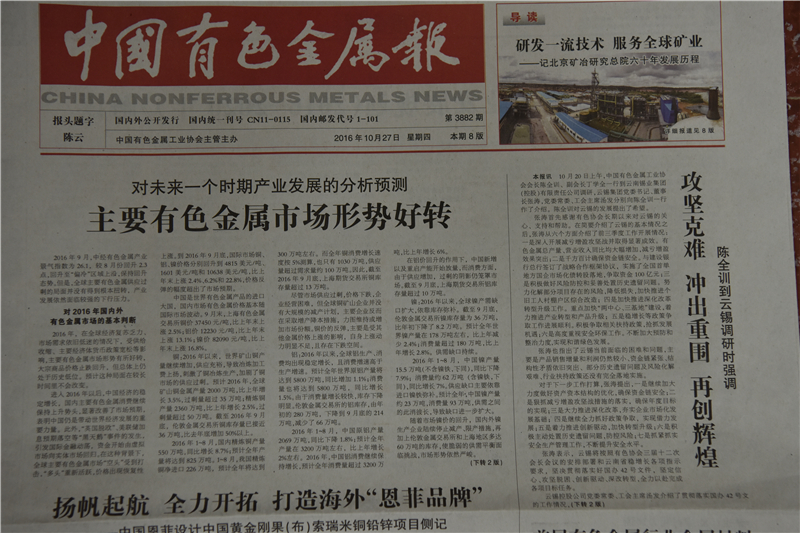 | 本報(bào)訊 10月20日上午,中國(guó)有色金屬工業(yè)協(xié)會(huì)會(huì)長(zhǎng)陳全訓(xùn)、副會(huì)長(zhǎng)丁學(xué)全一行到云南錫業(yè)集團(tuán)(控股)有限責(zé)任公司調(diào)研,云錫集團(tuán)黨委書記、董事長(zhǎng)張濤,黨委常委、工會(huì)主席湯發(fā)分別向陳全訓(xùn)一行作了介紹。陳全訓(xùn)對(duì)云錫的發(fā)展提出了希望。 張濤首先感謝有色協(xié)會(huì)長(zhǎng)期以來(lái)對(duì)云錫的關(guān)心、支持和幫助。在簡(jiǎn)要介紹了云錫的基本情況之后,張濤從六個(gè)方面介紹了前三季度工作開展情況:一是深入開展減虧增盈攻堅(jiān)戰(zhàn)并取得顯著成效。有色金屬總產(chǎn)量、營(yíng)業(yè)收入同比均大幅增加,減虧增盈效果突出;二是千方百計(jì)確保資金鏈安全。與建設(shè)銀行總行簽訂了戰(zhàn)略合作框架協(xié)議,實(shí)施了全國(guó)首單地方國(guó)企市場(chǎng)化債轉(zhuǎn)股落地,爭(zhēng)取資金100億元;三是積極做好風(fēng)險(xiǎn)防控和妥善處置歷史遺留問(wèn)題。努力化解部分項(xiàng)目存在的風(fēng)險(xiǎn),降低損失,加快推進(jìn)個(gè)舊工人村棚戶區(qū)綜合改造;四是加快推進(jìn)深化改革轉(zhuǎn)型升級(jí)工作。重點(diǎn)加快“兩中心、三基地”建設(shè),著力推進(jìn)產(chǎn)業(yè)轉(zhuǎn)型和產(chǎn)品升級(jí);五是穩(wěn)增長(zhǎng)等政策爭(zhēng)取工作進(jìn)展順利。積極爭(zhēng)取相關(guān)扶持政策,搶抓發(fā)展機(jī)遇;六是高度重視安全環(huán)保工作。不斷加大預(yù)防和整治力度,實(shí)現(xiàn)和諧綠色發(fā)展。 張濤也指出了云錫當(dāng)前面臨的困難和問(wèn)題,主要是產(chǎn)品銷售增量和利潤(rùn)仍然較小、資金鏈緊張、結(jié)構(gòu)性矛盾依舊突出、部分歷史遺留問(wèn)題及風(fēng)險(xiǎn)化解艱難、行業(yè)扶持政策還沒(méi)有完全落地實(shí)施。 對(duì)于下一步工作打算,張濤提出,一是繼續(xù)加大力度做好資產(chǎn)資本結(jié)構(gòu)的優(yōu)化,確保資金鏈安全;二是狠抓減虧增盈攻堅(jiān)戰(zhàn)措施的落實(shí),確保年度目標(biāo)的實(shí)現(xiàn);三是大力推進(jìn)深化改革,夯實(shí)企業(yè)市場(chǎng)化發(fā)展基礎(chǔ);四是繼續(xù)全力抓好政策爭(zhēng)取,實(shí)現(xiàn)借力發(fā)展;五是著力推進(jìn)創(chuàng)新驅(qū)動(dòng),加快轉(zhuǎn)型升級(jí);六是積極主動(dòng)處置歷史遺留問(wèn)題,防控風(fēng)險(xiǎn);七是抓緊抓實(shí)安全生產(chǎn)管理工作,不斷提升安全水平。 張濤表示,云錫將按照有色協(xié)會(huì)三屆十二次會(huì)長(zhǎng)會(huì)議的安排部署和云南省穩(wěn)增長(zhǎng)各項(xiàng)指示要求,堅(jiān)決貫徹落實(shí)好國(guó)辦42號(hào)文件,堅(jiān)定信心、攻堅(jiān)脫困、創(chuàng)新驅(qū)動(dòng)、深改轉(zhuǎn)型,全力以赴完成各項(xiàng)目標(biāo)任務(wù)。 云錫控股公司黨委常委、工會(huì)主席湯發(fā)介紹了貫徹落實(shí)國(guó)辦42號(hào)文的工作情況,并就關(guān)于幫助協(xié)調(diào)有關(guān)部門將錫業(yè)股份列入符合工信部《銅冶煉行業(yè)規(guī)范條件》企業(yè)目錄、開展銅精礦加工貿(mào)易業(yè)務(wù)等七個(gè)方面的事宜,懇請(qǐng)有色協(xié)會(huì)幫助協(xié)調(diào)國(guó)家有關(guān)部委、云南省相關(guān)部門等給予政策支持、稅費(fèi)減免或資金支持等,希望在有色協(xié)會(huì)的指導(dǎo)和幫助下,進(jìn)一步加強(qiáng)與政策對(duì)口部委的溝通聯(lián)系,積極反映云錫的訴求,力爭(zhēng)各項(xiàng)政策早日落地,云錫將抓緊做好政策落地后的操作流程和程序研究工作,讓政策的紅利早日惠及云錫。 聽取了工作匯報(bào)后,陳全訓(xùn)指出,你們提到的42號(hào)文件政策的爭(zhēng)取,協(xié)會(huì)十分重視,將給予大力支持。有色協(xié)會(huì)就是要為企業(yè)服務(wù),你們的有些請(qǐng)求事項(xiàng)涉及有關(guān)部委,需要花大力氣落實(shí),你們提的這些問(wèn)題我們是可以支持的。回去后有色協(xié)會(huì)要把這些問(wèn)題分解,分送給有關(guān)部門,請(qǐng)求幫助解決。但工作的主體還是云錫,你們要積極反映、溝通和交流。對(duì)于有關(guān)政策能爭(zhēng)取多少算多少,國(guó)家的政策不是一兩天就能爭(zhēng)取到的,比如收儲(chǔ)這件事,到現(xiàn)在還沒(méi)有真正落實(shí),要持之以恒。 陳全訓(xùn)強(qiáng)調(diào),聽了你們的情況匯報(bào),給我的感覺(jué)是,云錫雖然目前遇到了一些暫時(shí)的困難,但志氣沒(méi)有滅,精神沒(méi)有倒。特別是張濤同志來(lái)到云錫之后,整個(gè)班子的精神狀態(tài)很好,工作非常努力。云錫提出“三年打基礎(chǔ),五年大翻身,十年創(chuàng)輝煌”的目標(biāo),我認(rèn)為這是符合云錫實(shí)際的,完全能夠做到。你們現(xiàn)在遇到的困難無(wú)非是歷史、市場(chǎng)等原因造成的,這些困難是完全能夠克服的。希望公司領(lǐng)導(dǎo)班子精誠(chéng)團(tuán)結(jié),在以張濤為核心的領(lǐng)導(dǎo)班子的帶領(lǐng)下,有國(guó)家42號(hào)文的指引、中央各部委的支持和云南省委省政府的正確領(lǐng)導(dǎo),云錫的奮斗目標(biāo)完全能夠?qū)崿F(xiàn)。我相信市場(chǎng)一定會(huì)逐漸向好,云錫也一定能打好翻身仗,我對(duì)此很