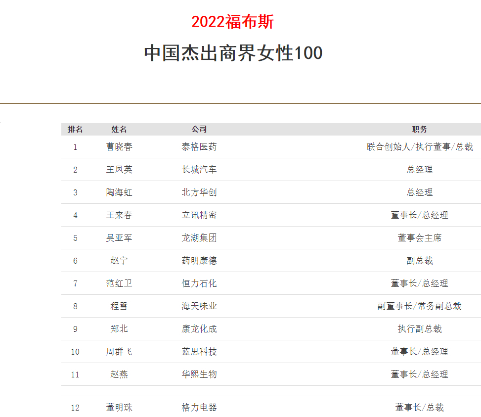 福布斯中國發文指出,100位活躍在中國的商界女性再次用行動證明,性別和年齡不能成為定義成功的標準。在過去不確定的一年里,女性企業家在不斷創造更大商業成功的同時,也在承擔更多的社會責任。