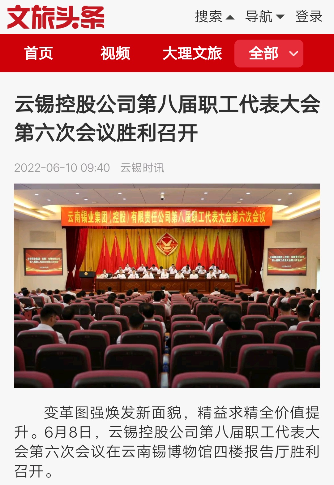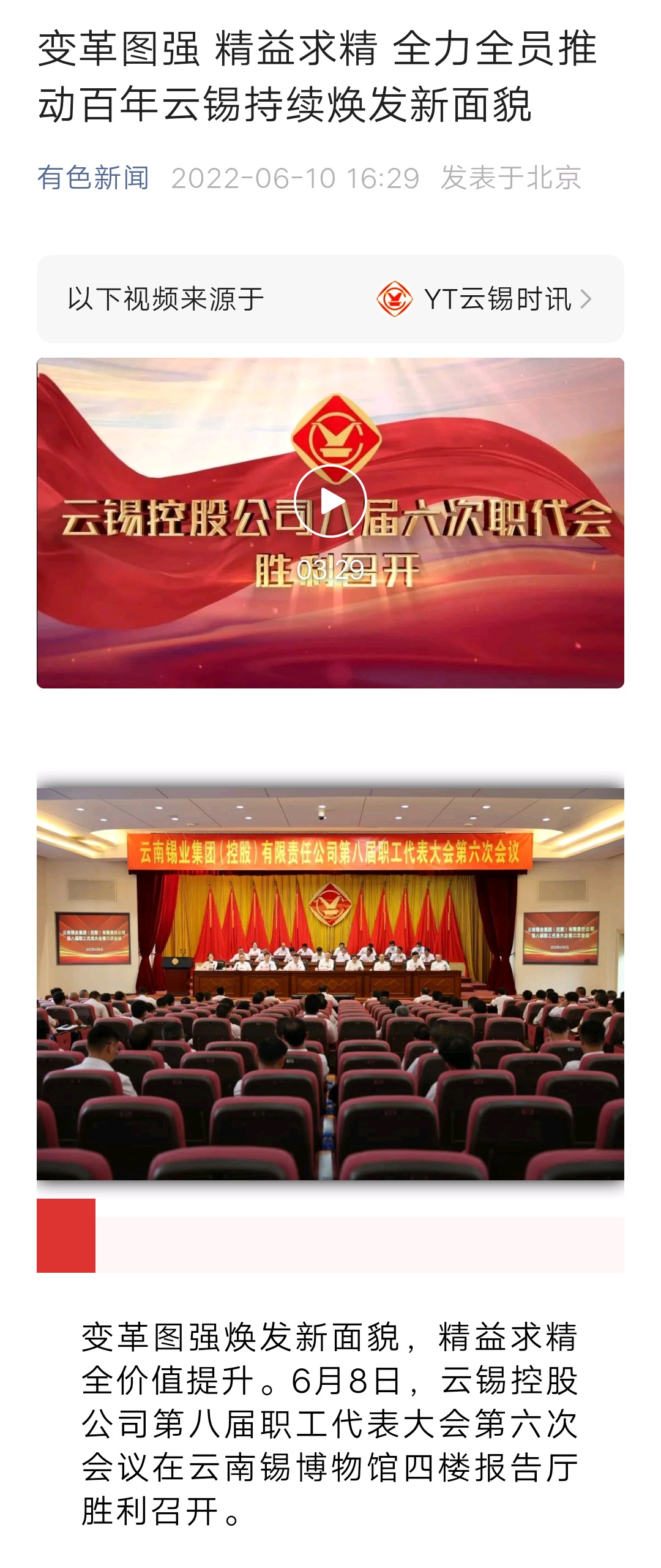 中國有色金屬報、有色新聞、文旅頭條、開屏新聞:變革圖強 精益求精 全力全員推動百年云錫持續煥發新面貌