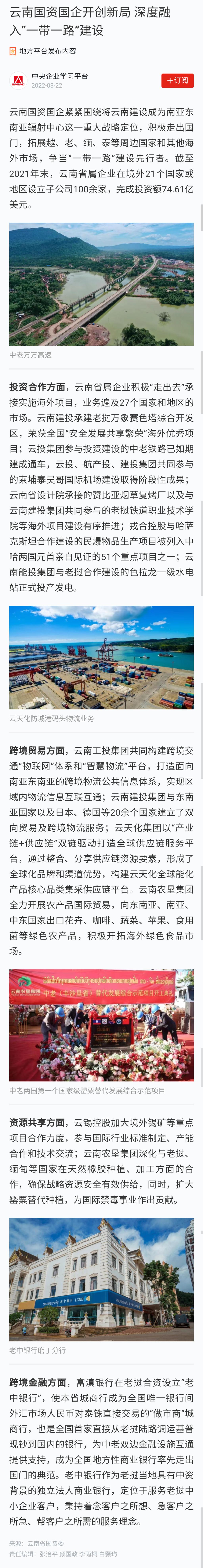 學習強國:云南國資國企開創新局 深度融入“一帶一路”建設