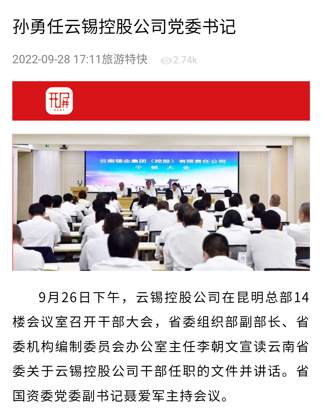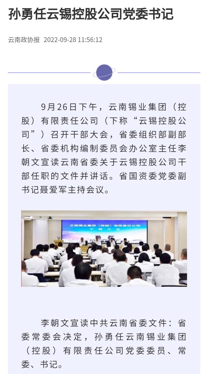 來源:新華財經、云南政協報、中國有色金屬報、文旅頭條、開屏新聞