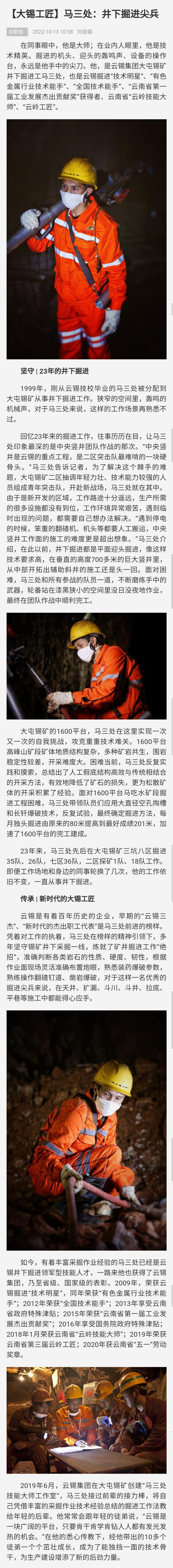 文旅頭條:【大錫工匠】馬三處:井下掘進尖兵