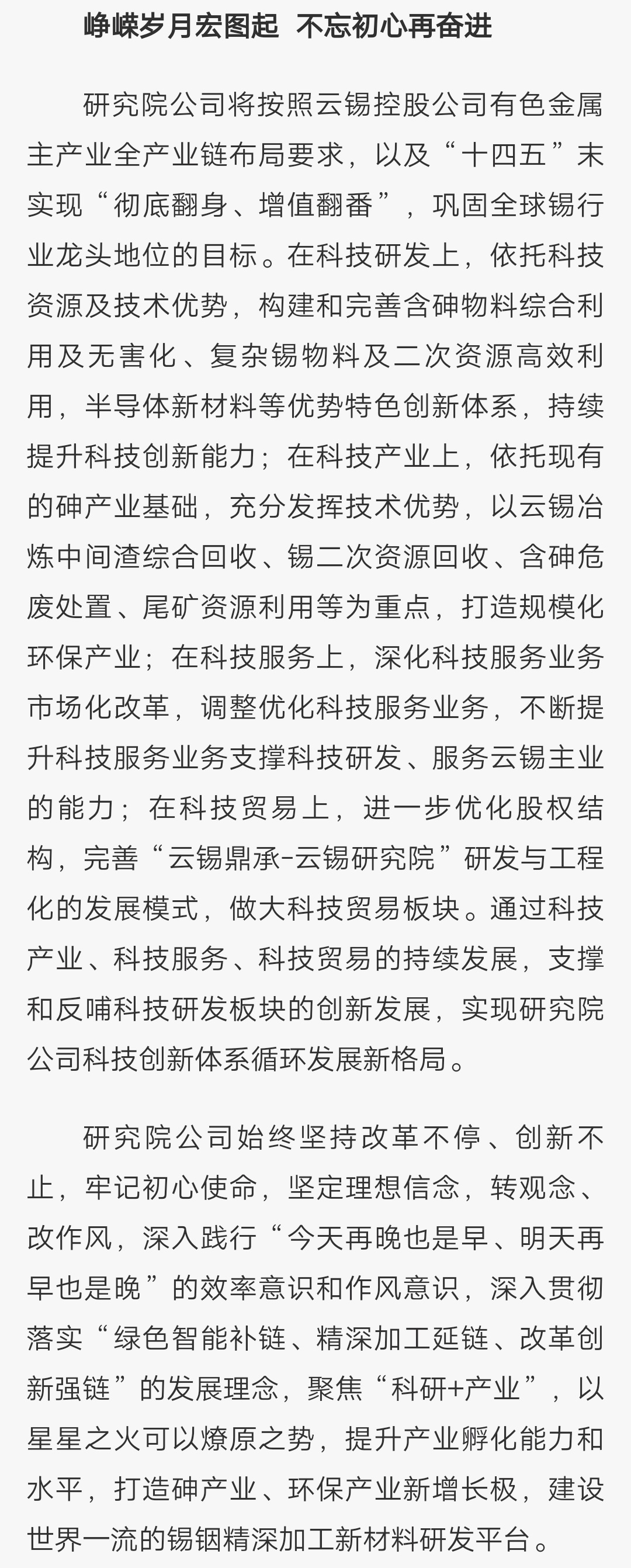 文旅頭條:云錫研究院公司:踔厲奮發這十年