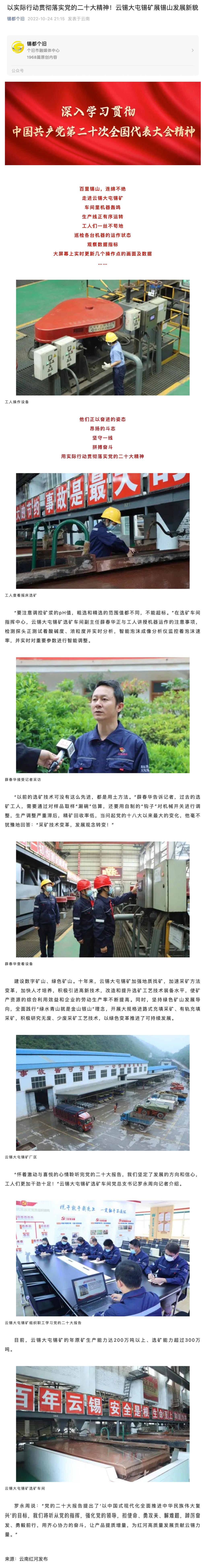 錫都個舊:以實際行動貫徹落實黨的二十大精神!云錫大屯錫礦展錫山發展新貌