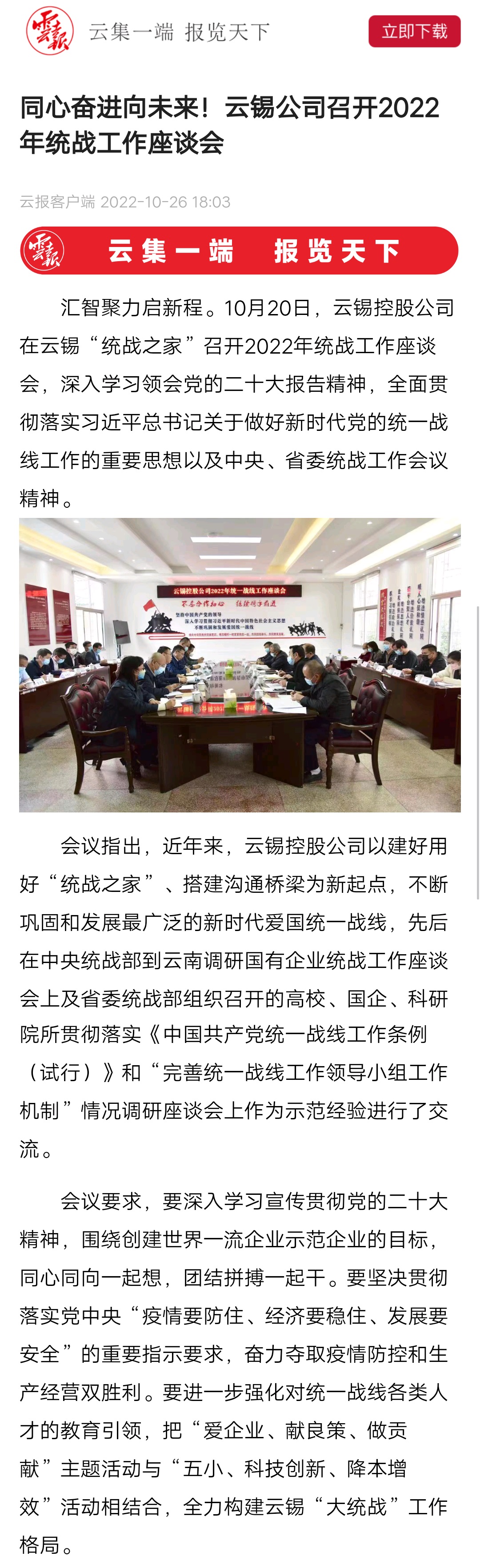 云報客戶端:同心奮進向未來!控股公司召開2022年統戰工作座談會