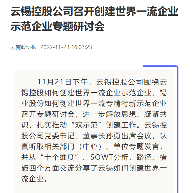 來源:新華財(cái)經(jīng)、云南政協(xié)報(bào)、中國(guó)有色金屬報(bào)、文旅頭條