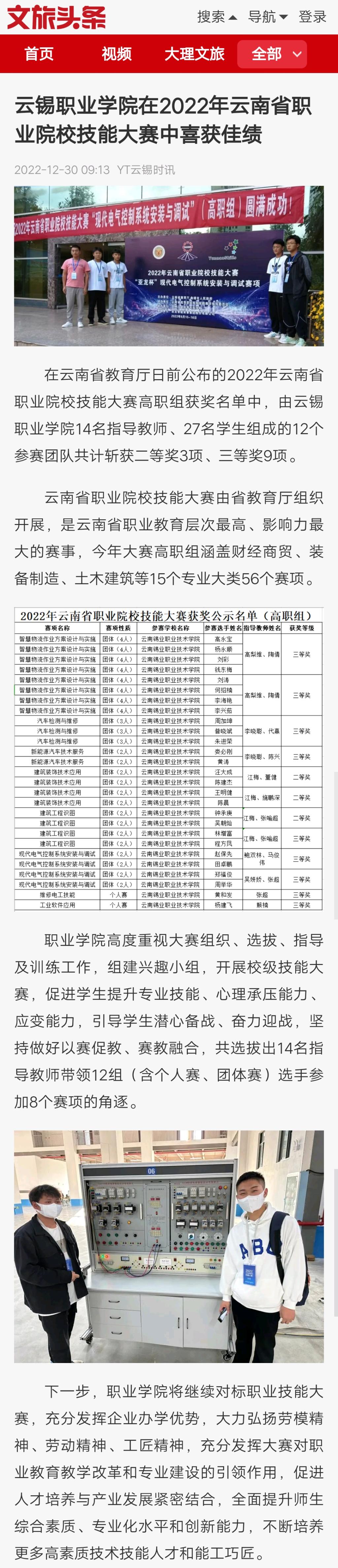 文旅頭條:云錫職業學院在2022年云南省職業院校技能大賽中喜獲佳績