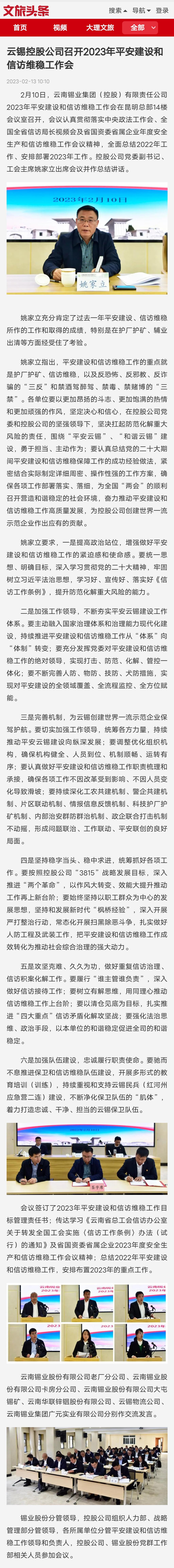 文旅頭條:云錫控股公司召開2023年平安建設和信訪維穩(wěn)工作會
