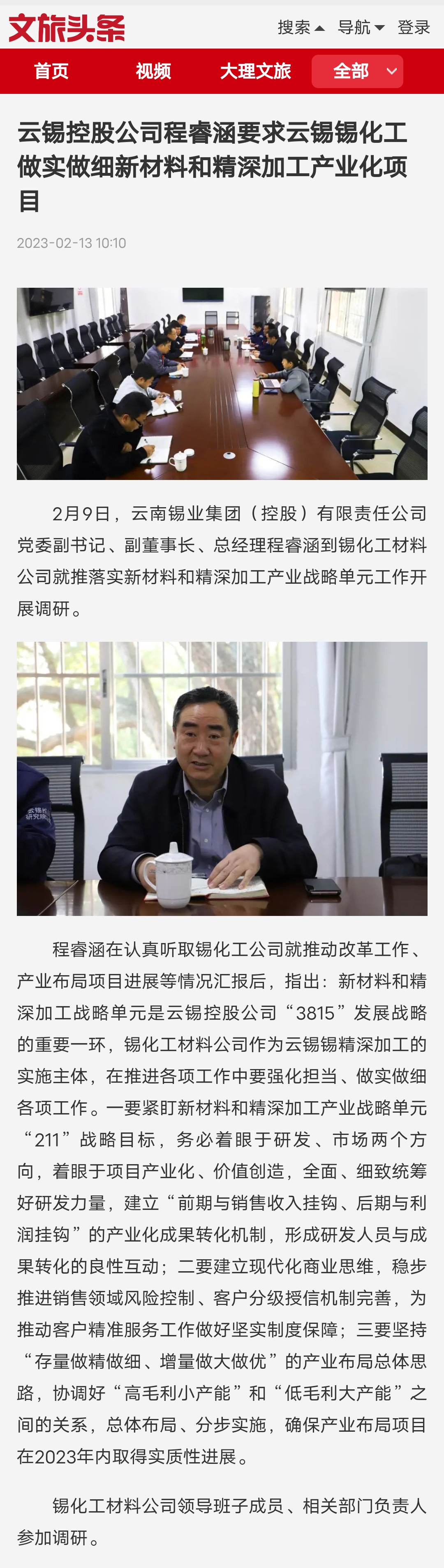 文旅頭條:云錫控股公司程睿涵要求云錫錫化工做實做細新材料和精深加工產業化項目