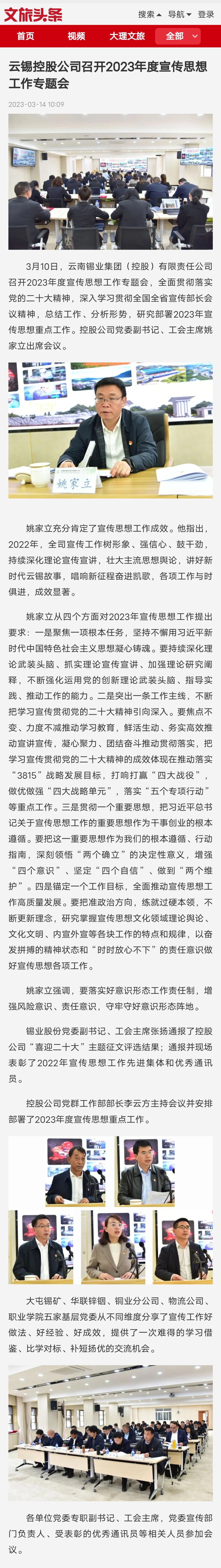 文旅頭條:云錫控股公司召開2023年度宣傳思想工作專題會