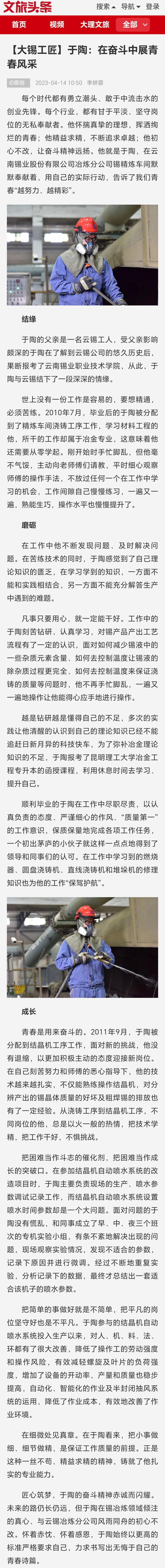 文旅頭條:【大錫工匠】于陶:在奮斗中展青春風(fēng)采