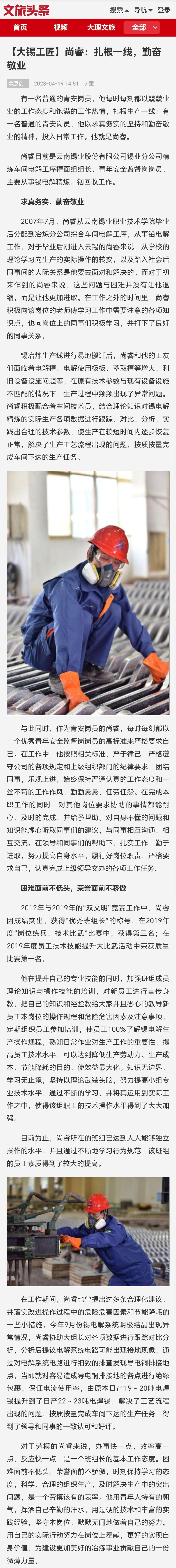 文旅頭條:【大錫工匠】尚睿:扎根一線,勤奮敬業