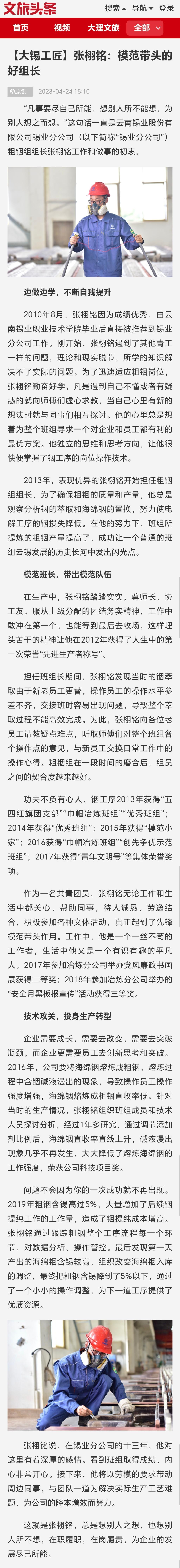 文旅頭條:【大錫工匠】張栩銘:模范帶頭的好組長
