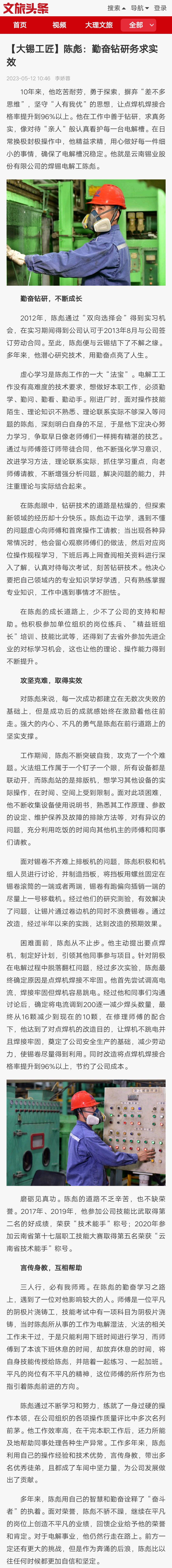 文旅頭條:【大錫工匠】陳彪:勤奮鉆研務求實效