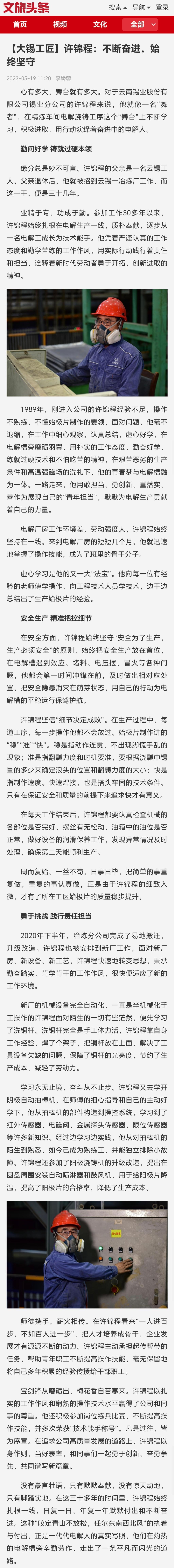 文旅頭條:【大錫工匠】許錦程:不斷奮進,始終堅守