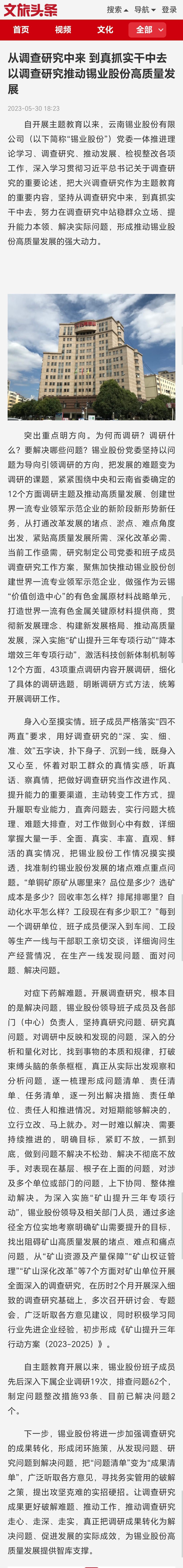 云南國資、文旅頭條:從調查研究中來 到真抓實干中去 以調查研究推動錫業股份高質量發展